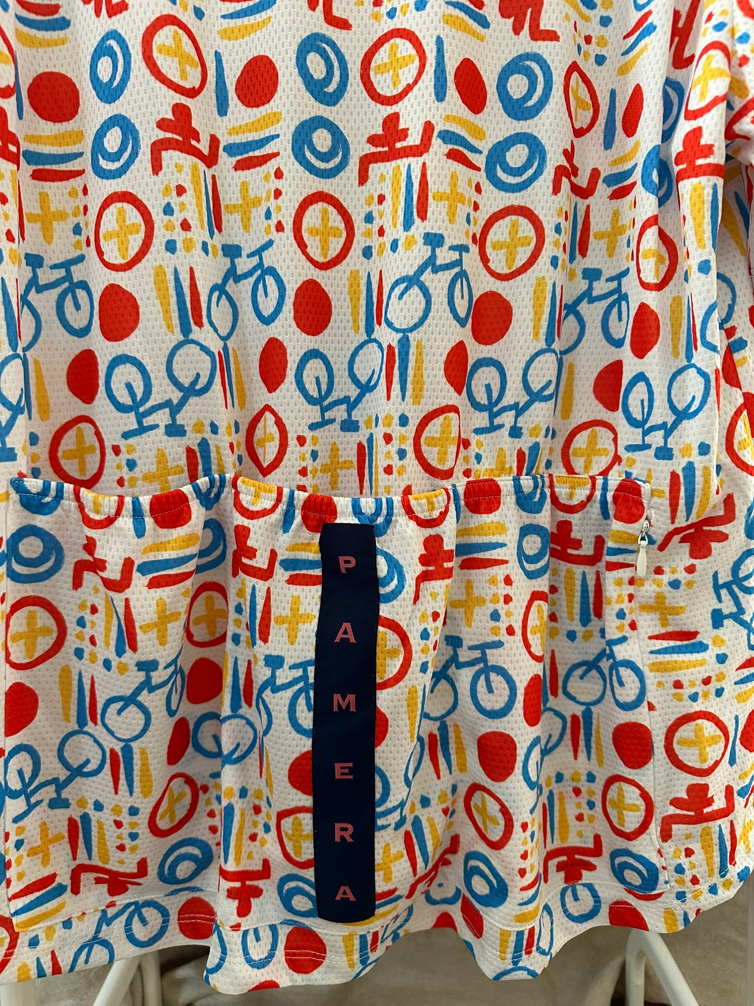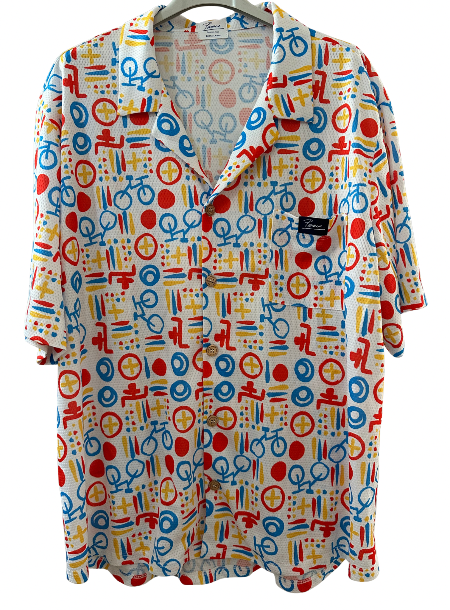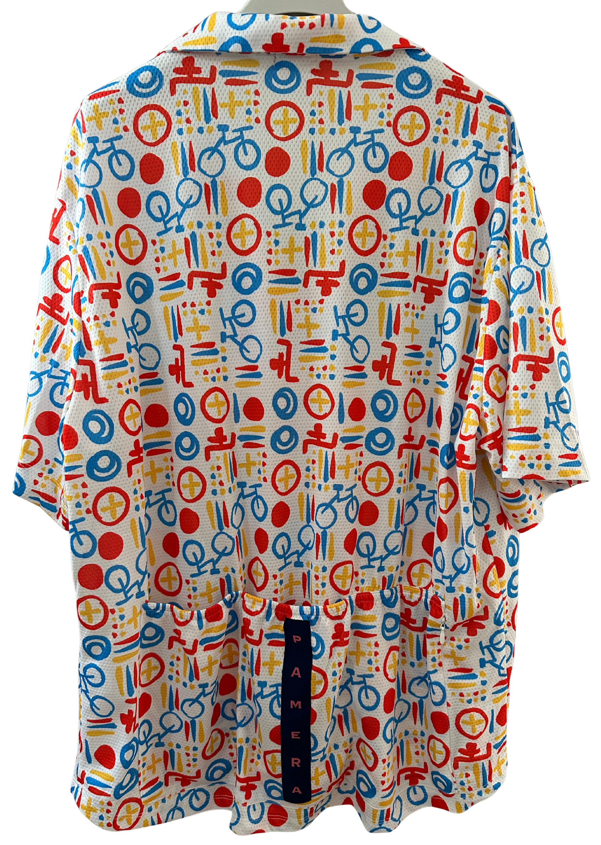 Hawaiian-inspired style, reimagined in the official Bicis Sin Fronteras (BSF) colors. The fabric features a mesh structure for maximum breathability and lightness.