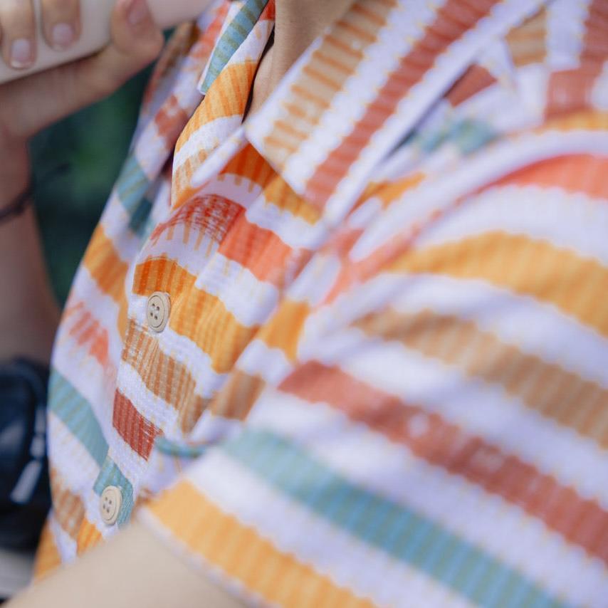 The Na Makele gravel Shirt radiates pure summer vibes with its warm honey-colored horizontal stripes on a crisp white background. Its fresh and breezy design instantly evokes sun-soaked days and carefree coastal adventures, making it a must-have for the season.